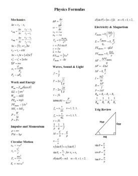 Download physics formula sheet 9th grade algebra physics Doc ManyBooks